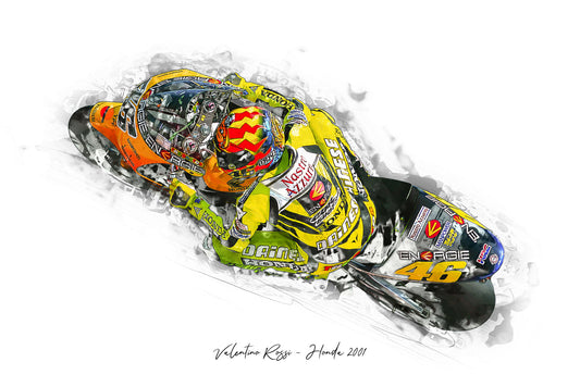 Valentino Rossi - Honda 2001 - Kunstdruck gerahmt - 40 x 30 cm