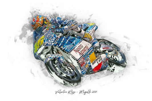 Valentino Rossi - Mugello 2001 - Kunstdruck gerahmt - 40 x 30 cm