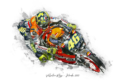 Valentino Rossi - Honda 2003 - Kunstdruck gerahmt - 40 x 30 cm