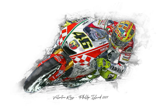 Valentino Rossi - Phillip Island 2007 - Kunstdruck gerahmt - 40 x 30 cm